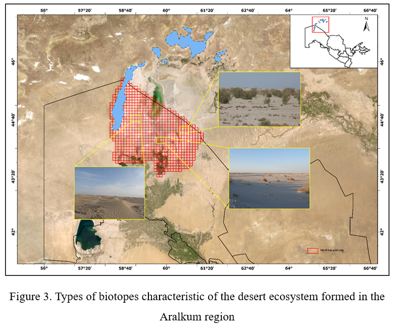 The ecological changes occurring in this region have had a significant impact not only on the climate and soil composition but also on biological diversity. As a result, the distribution area of species adapted to wetland ecosystems has sharply decreased. At the same time, the Aralkum Desert, which emerged between the Ustyurt Plateau and the Kyzylkum Desert, led to the formation of a new bird community as a unique and unique desert ecosystem. Therefore, the scientific study of the state of the desert ecosystem formed on the dried seabed and its ornithological fauna, the distribution of species across the biotopes of these ecosystems, and adaptation mechanisms is of urgent importance.